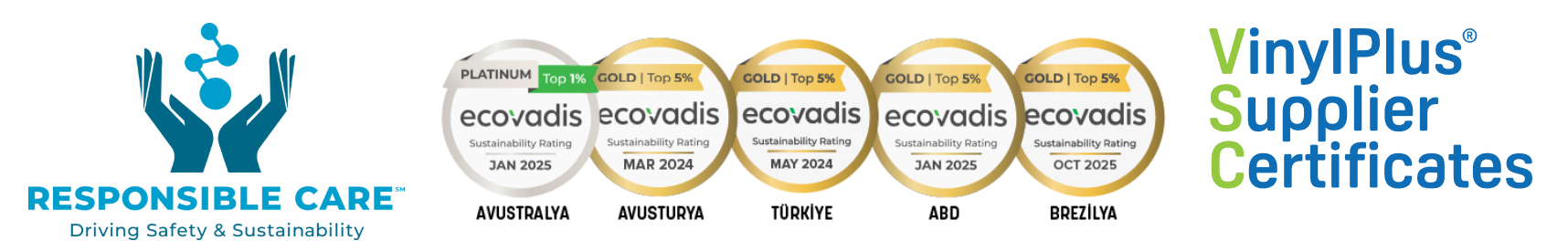 Akdeniz Chemson is a member of various national and international industrial organisations including VinylPlus, German AGPU, British Plastics Federation, US Plastics and the Natural Step. VinylPlus®️ is the European PVC industry’s commitment to sustainable development, working to improve the sustainability performance of polyvinyl chloride, known as PVC or vinyl. In line with international developments, Akdeniz Chemson supports the wide-spread adoption of environmental awareness in employees, suppliers and sub-contractors.
