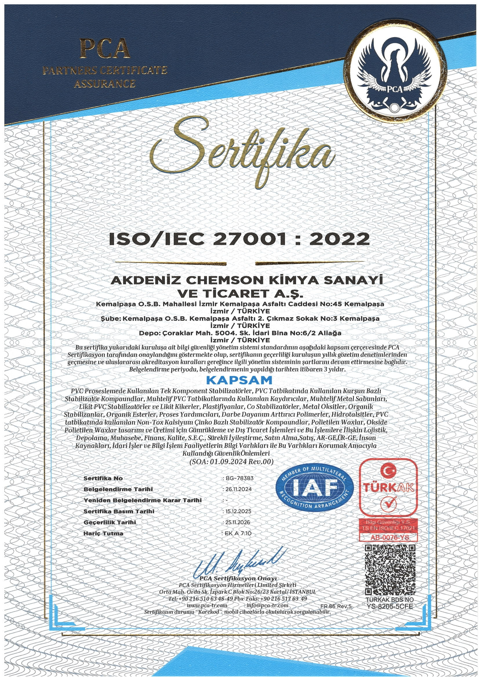 PVC stabilizatörlerinde bir dünya lideri olan Akdeniz Chemson, Akdeniz Kimya ve Chemson Group’un birleşmesinden oluşmuştur. Kurumsal geçmişimiz hakkında daha fazla bilgi edinmek için okumaya devam edin.